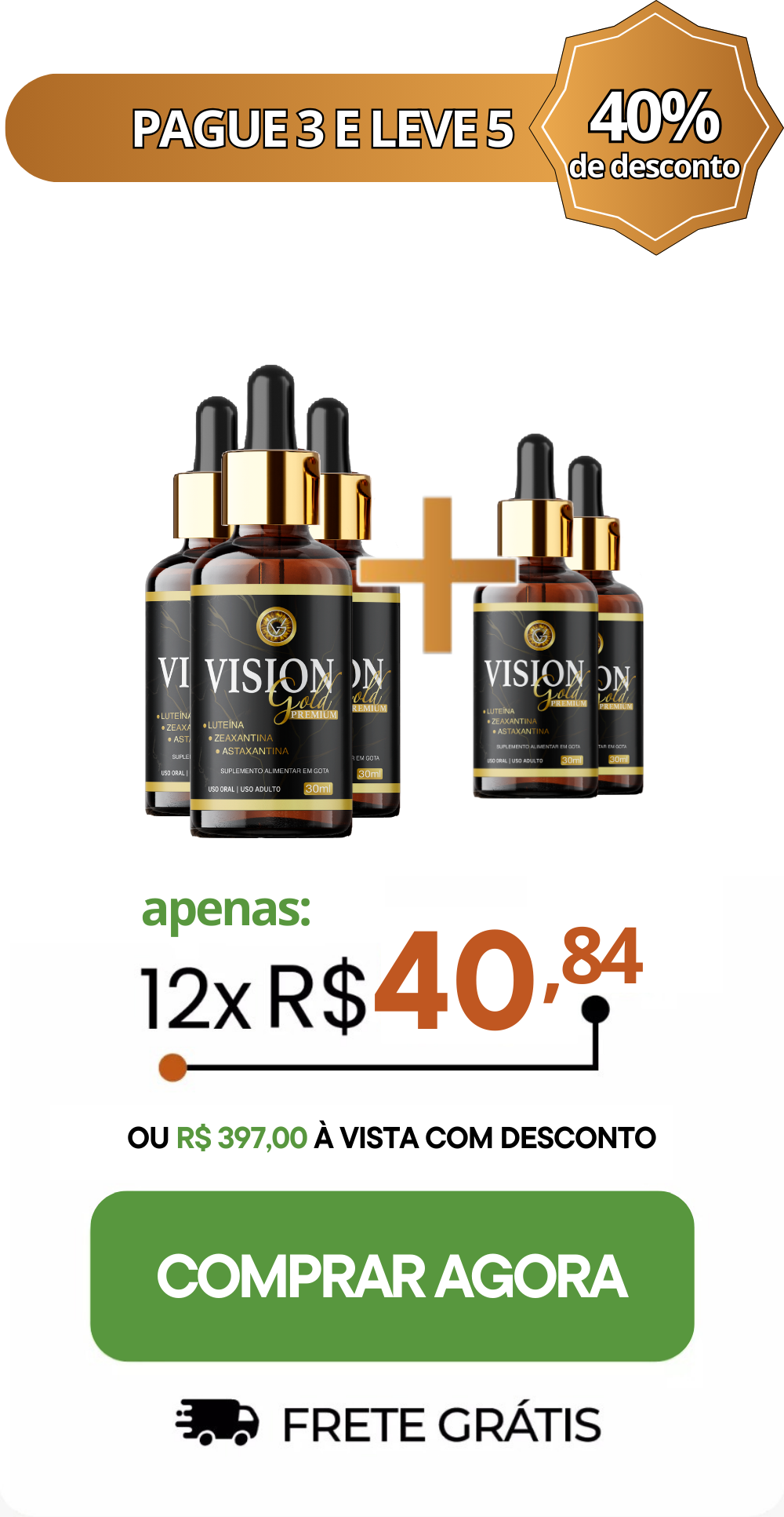 Vision Gold é a solução perfeita para manter a saúde dos seus olhos de forma natural e eficaz. Nossa fórmula única é fruto de mais de dez anos de pesquisa e desenvolvimento, garantindo segurança e resultados comprovados.